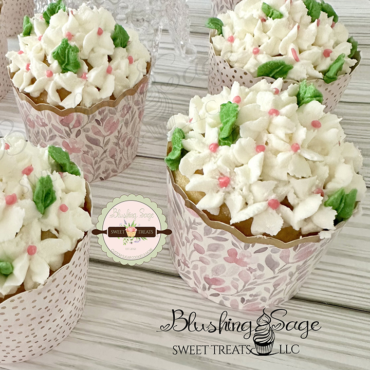Our sugar cookies and cupcakes are homemade from scratch, fresh with care. Each cookie is beautifully hand decorated with yummy royal icing. They are an excellent addition to your event or gathering and commonly used as party favors! The cookies will be individually sealed in a clear cellophane bag for safety and freshness before boxed for shipping. Our cupcakes are topped with buttercream and sprinkles of fun. However, they are for local orders only and cannot be shipped at this time.